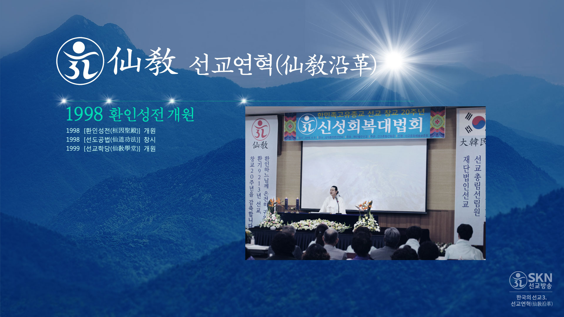 1988년 개천입교(開天立敎) · 1991년 선교 창교 · 1997년 선교 교단 창설 · 2016년 천교(天敎) 통합