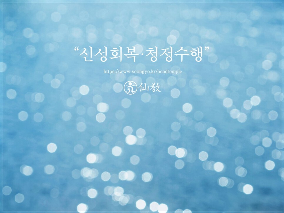 종교(宗敎)는 가장 근본이 되는 가르침입니다. 종교인(宗敎人)은 양심 · 신의 · 성실이라는 신의칙(信義則)을 신앙생활의 원칙으로 지켜야 합니다. 종교의 평화(宗敎平和)는 인류의 평화를 구현하는 원력이 됩니다. 인류를 구원하는 종교의 평화는 종교간의 존중과 질서에 의해 이루어집니다. 종교와 민족, 종교와 국가, 종교와 사회, 종교와 신도 의 관계는 종교와 종교 간의 존중과 질서라는 종교적 윤리에 의해 인류의 평화를 안배하게 되는 것입니다. 초지일관하는 종교인(宗敎人)의 자세, 하늘을 숭앙하는 숭고한 신앙인(信仰人)의 신행, 한민족의 시조이시며 온 세상의 하느님이신 환인상제(桓因上帝)를 신앙하는 선교인(仙敎人)의 청정(淸淨) 수행이 인류의 신성회복(神性回復)과 생명구원(生命救援)을 실현하게 됩니다. “종교의 평화는 인류의 평화입니다.”